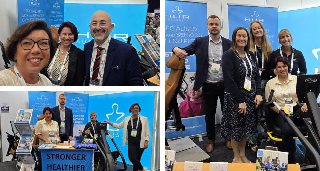 People in our images: Tom Symondson, CEO Ageing Australia: Janice Chia, Managing Director, Ageing Asia; Kate Weger, Head of Clinical & Governance, Hartmann Group; Mark Ryu, Group Commercial Manager, Australian Ageing Agenda; Anthony Nguyen, Pioneers in Ageing Podcast; Frank Price, CEO, RFBI; Natasha Eagan, Editor, Australian Ageing Agenda; Katie Symonds, Operations Manager, Village Glen and Flexi Care; Linda Wojciechowicz, Global Sales Manager, NuStep; Team HUR Australia: Timo Toivonen, Dorothy Dominikowska and Tuire Karaharju-Huisman.