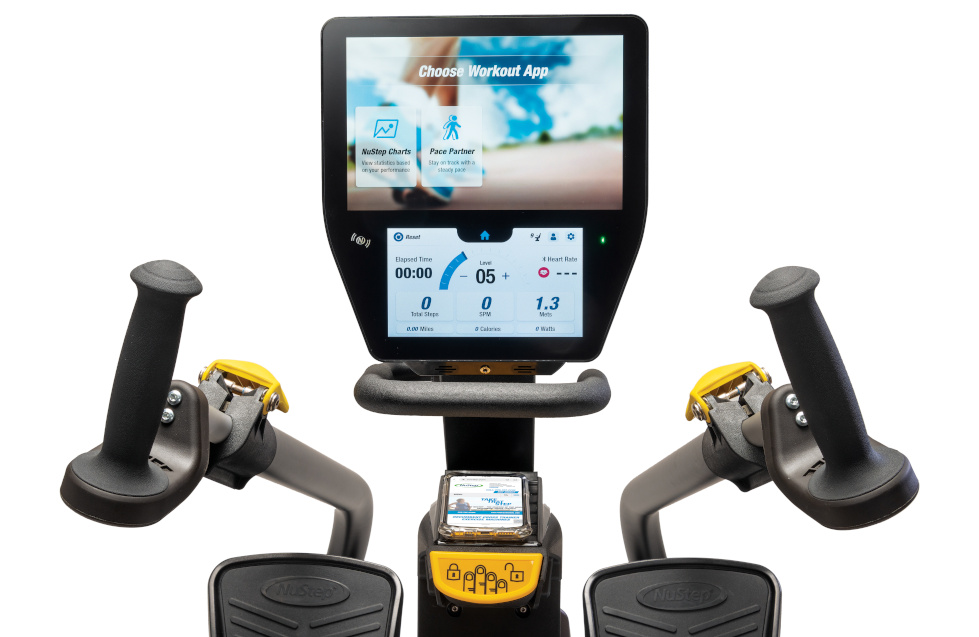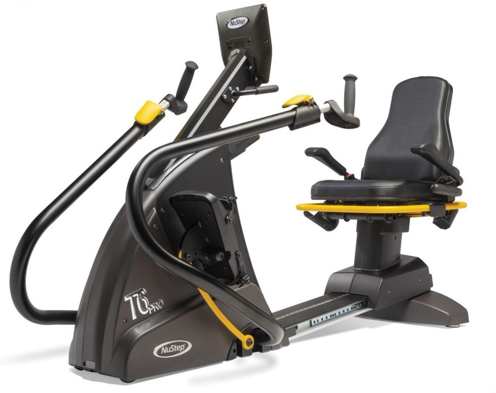 The NuStep T6 delivers a low-impact total body workout that can benefit users of virtually any fitness level or functional ability. It can be used with either legs or arms or both simultaneously for a true cross-trainer experience. It features 15 levels of resistance, easily changed during a workout via the lower touch-screen.
