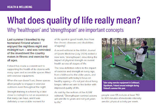 What does quality of life really mean?Why ‘healthspan’ and ‘strengthspan’ are important concepts. >> Click here to read the column |