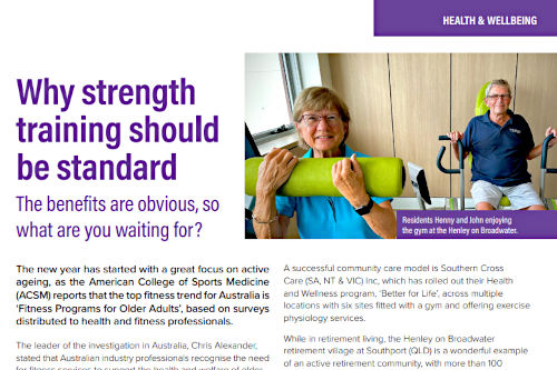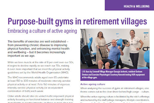 Purpose-built gyms in retirement villagesEmbracing a culture of active ageing. >> Click here to read the column |