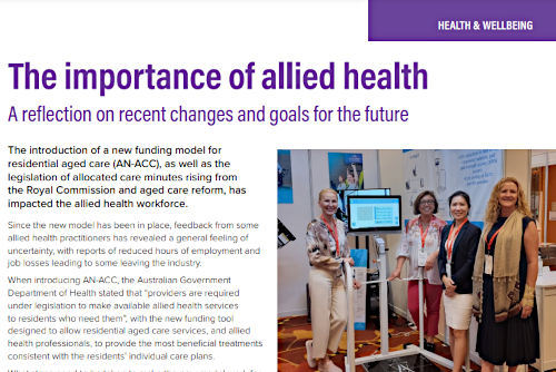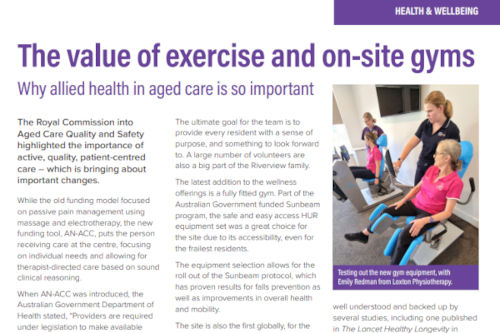 The value of exercise and on-site gymsWhy allied health in aged care is so important. >> Click here to read the column |