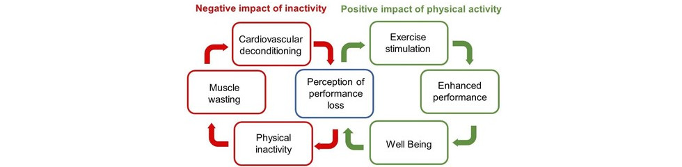 “Vicious Circle” of inactivity – the negative impact of inactivity and the positive effect of physical activity (Adapted from Gremeaux et al., 2012).