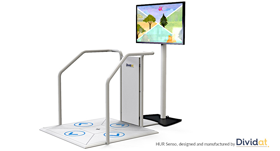 Introducing the HUR Senso, a scientifically based dual-tasking fall reduction and cognitive training platform designed by Dividat to support independence. The think and move integrated equipment simultaneously improves physical and cognitive function through easy to use and fun interactive motor training activities and gaming.